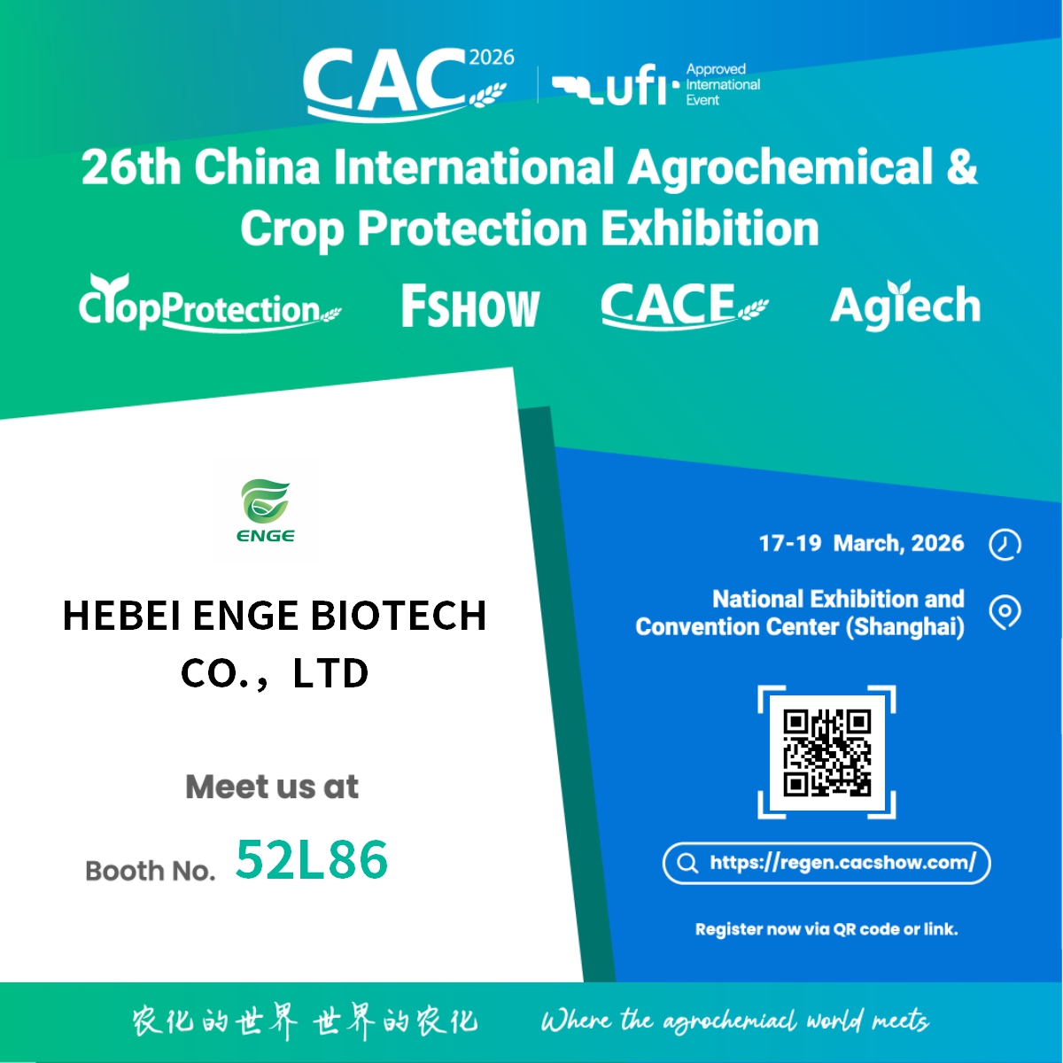 Welcome to visit ENGE BIOTECH on 2026 CAC Exhibition during March.17 to 19. Booth No.: 52L86 Post time: Mar-06-2026