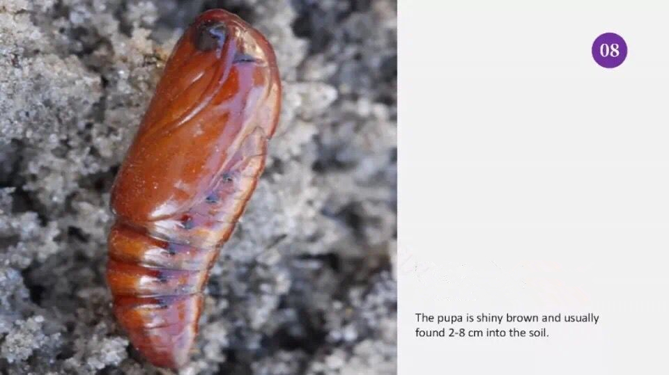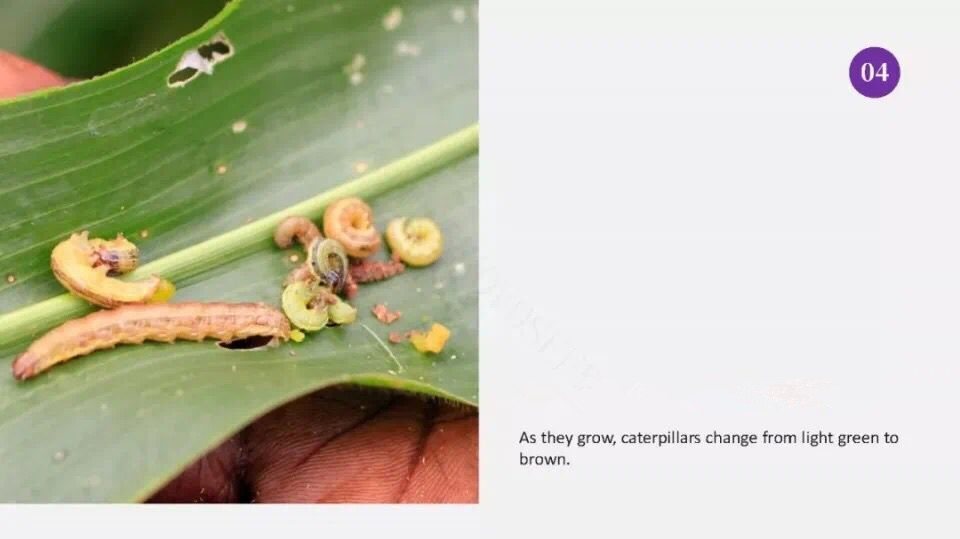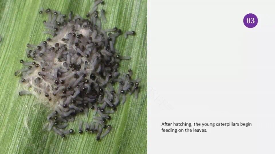 It can be divided into four stages: egg, larva, chrysalis and adult.Eggs are dome-shaped and hemispherical, clustered on the surface of leaves.Gray at birth, brown after 12 hours.The larva has inverted Y-shaped white stitches on the head and is pale yellow or green during growth.The larvae turn into pupae, oval in shape, deep in the soil.Reddish brown, adult after emergence, grayish brown, nocturnal.